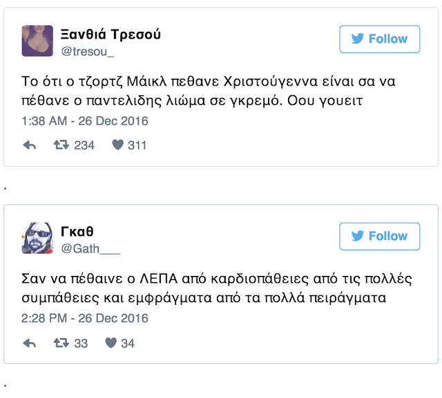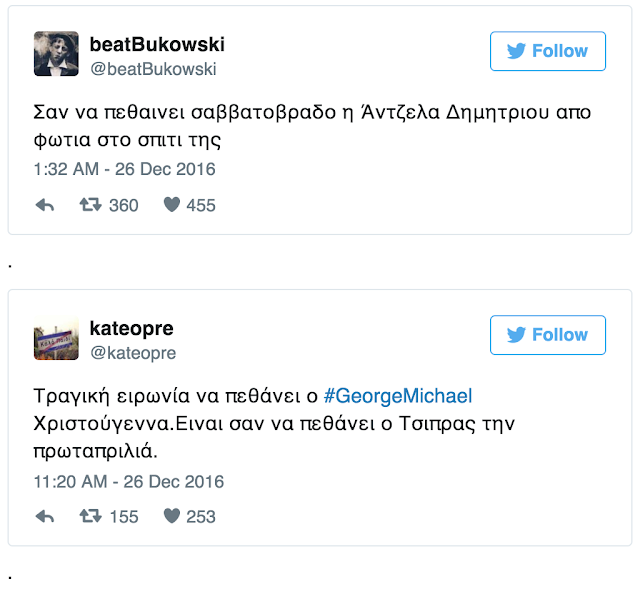Μαζί με το σοκ για το θάνατο του Τζορτζ Μάικλ, δεν είναι δυνατόν να μη σκεφτείς την τραγική ειρωνεία του…. θανάτου του ανήμερα των Χριστουγέννων.